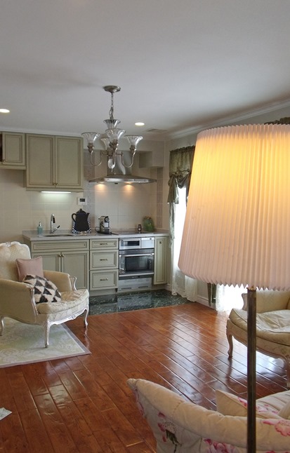 ブルーをアクセントにしたインテリアです。天井に化粧モールディングを取り付け、表情を増しました。